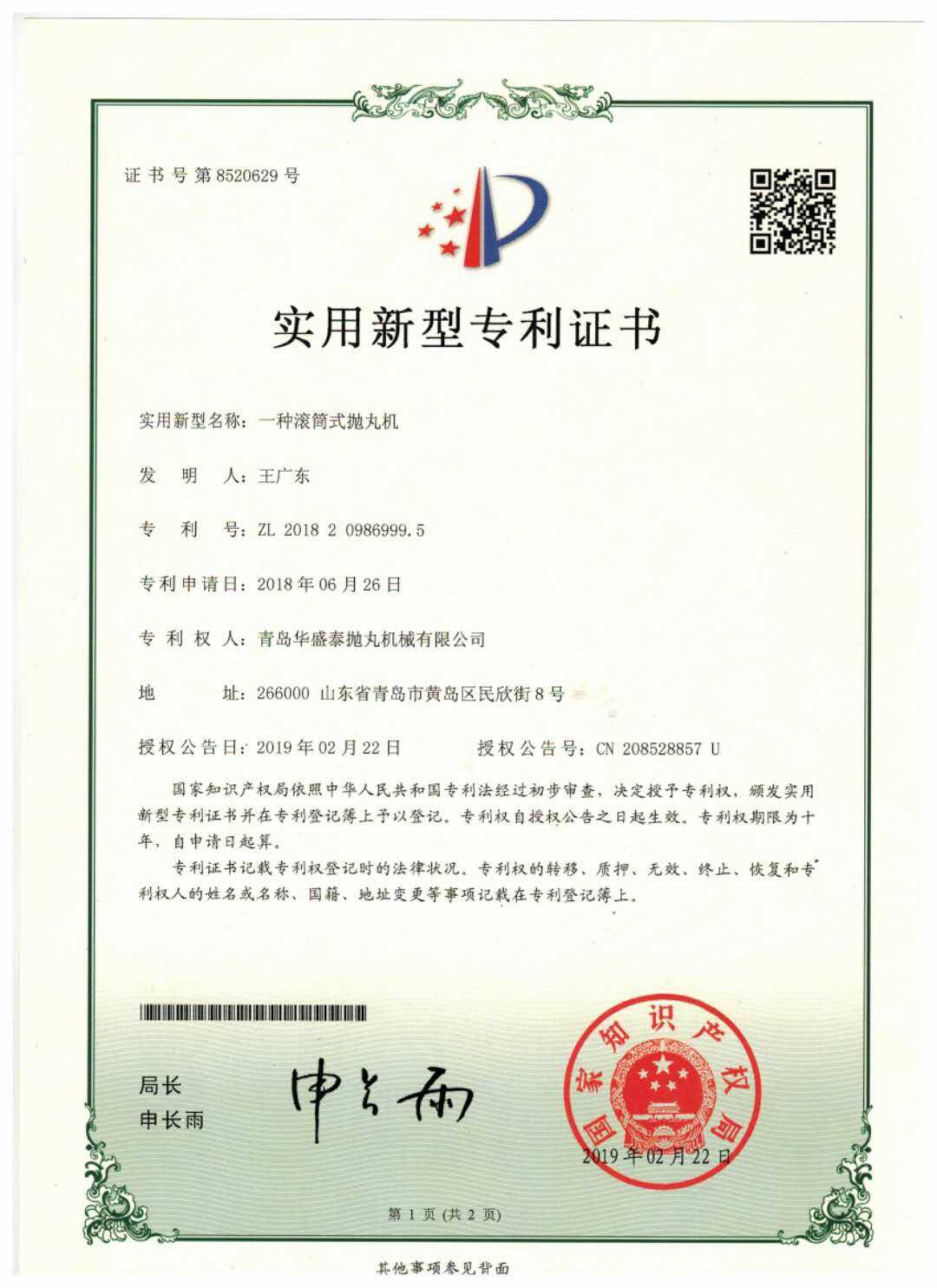 • 實(shí)用新型專利證書