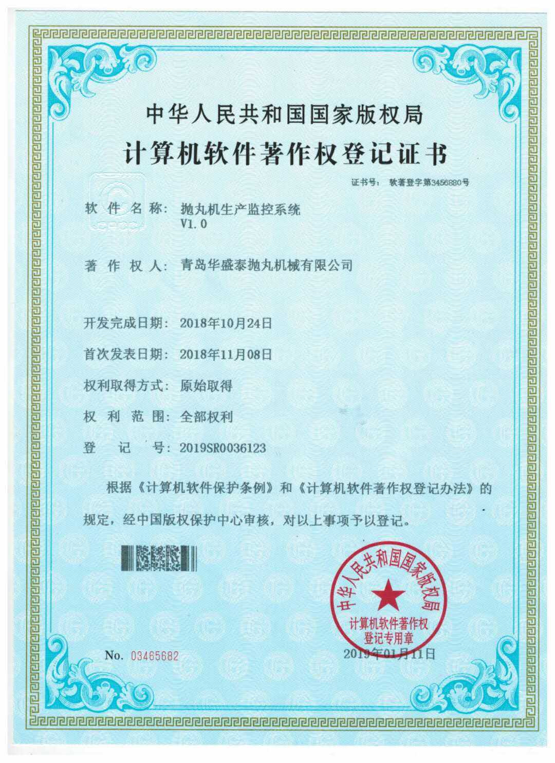 • 計(jì)算機(jī)軟件著作權(quán)登記證書