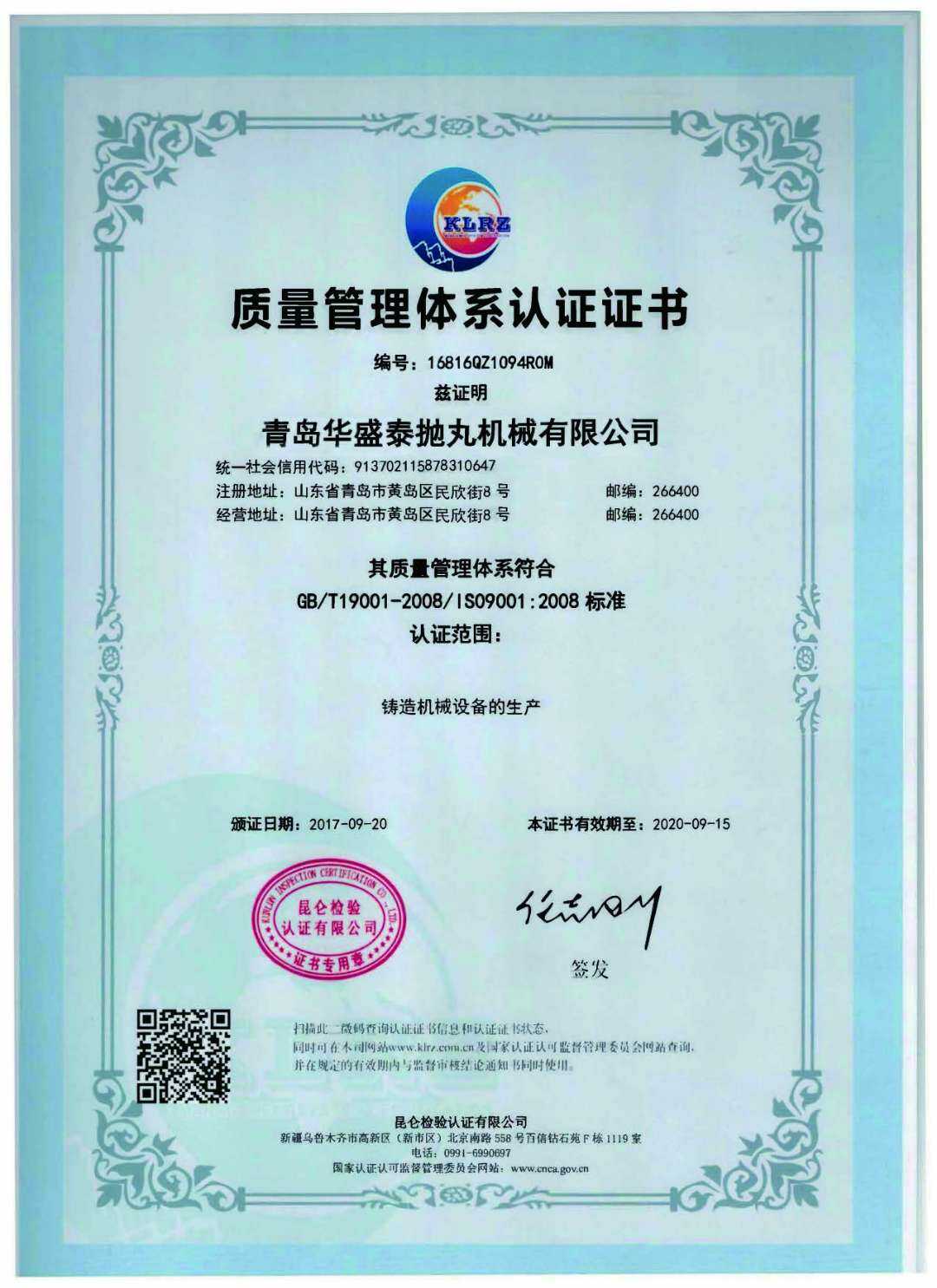 • 質(zhì)量管理體系認(rèn)證證書